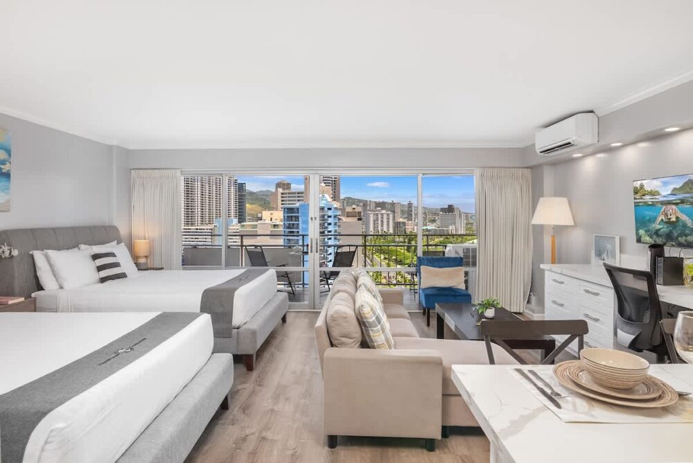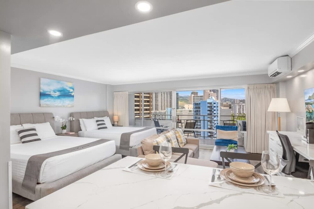 Escape to our newly renovated studio at the Ilikai Hotel, offering stunning city views. Just steps from the beach and lagoon, this unit is perfect for a relaxing getaway. Valet parking is available for $45/day (subject to change). Whether you’re here to unwind or explore, this is the ideal spot. Book your stay today and make your trip unforgettable!