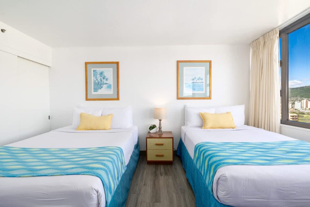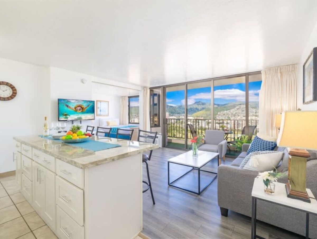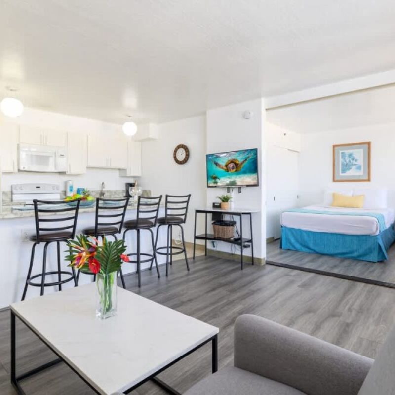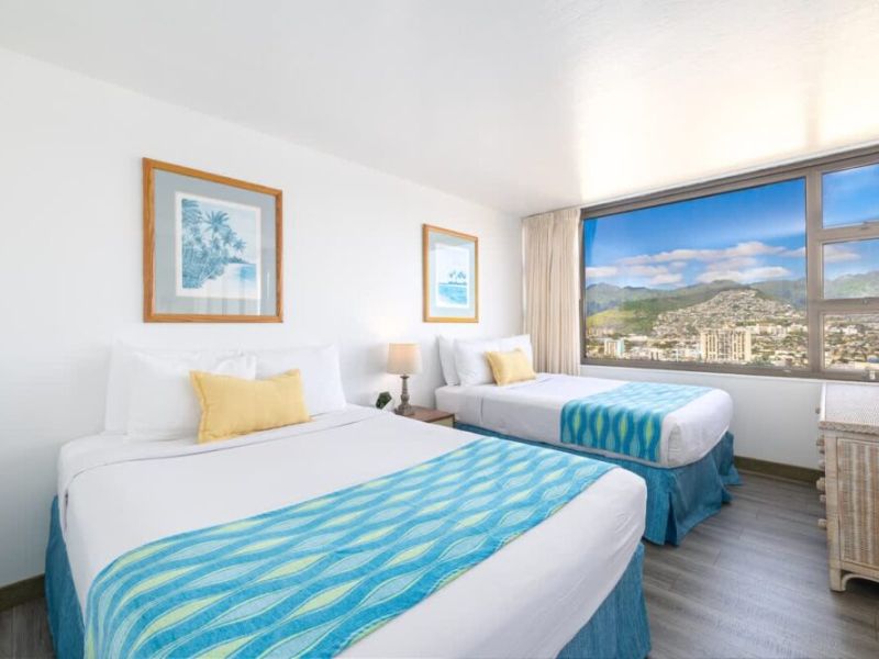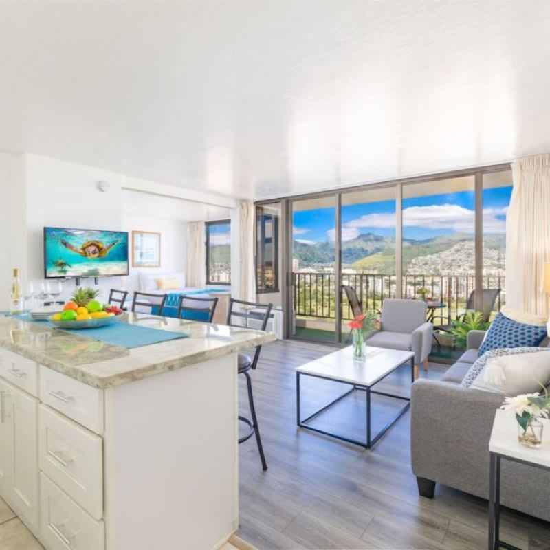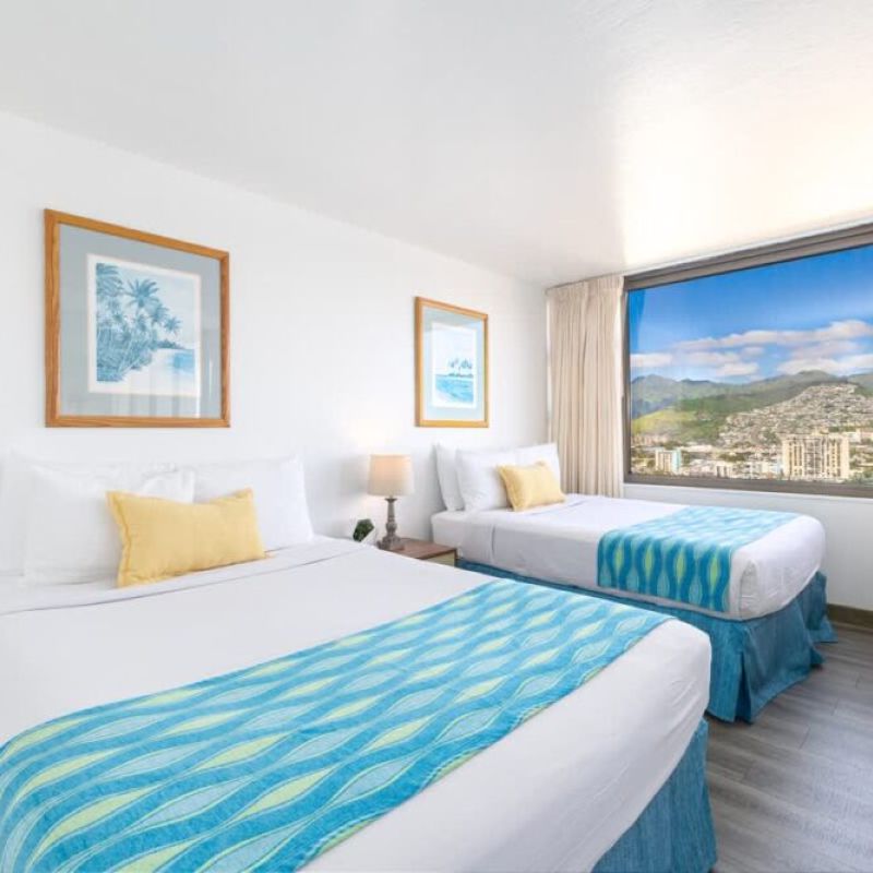 Beautiful 1-bedroom condo, perfect for accommodating up to 4 guests, nestled within the Condominium Hotel Waikiki Banyan brought to you by Midway Vacations! It’s just a stroll away from the beautiful Waikiki Beach, shopping centers, and a delightful array of restaurants. Enjoy complimentary parking and high-speed wireless internet while taking in the breathtaking mountain views!