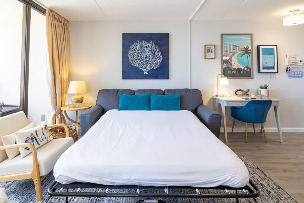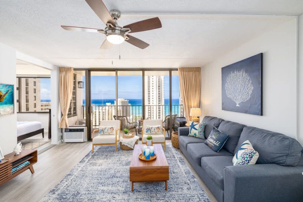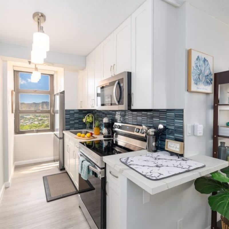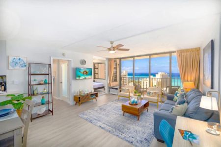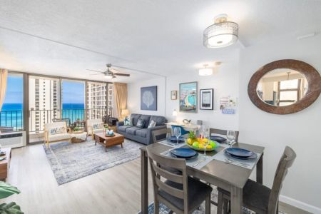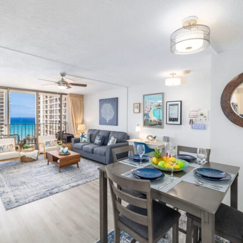 Cozy and recently renovated 1-bedroom condo on the 28th floor of the Condominium Hotel Waikiki Banyan that offers breathtaking ocean and Diamond Head views! It’s perfect for up to four guests. Just a short stroll away from Waikiki Beach, fantastic shopping spots, and a variety of restaurants. Plus, we offer complimentary parking and high-speed wireless internet to make your stay even more enjoyable!